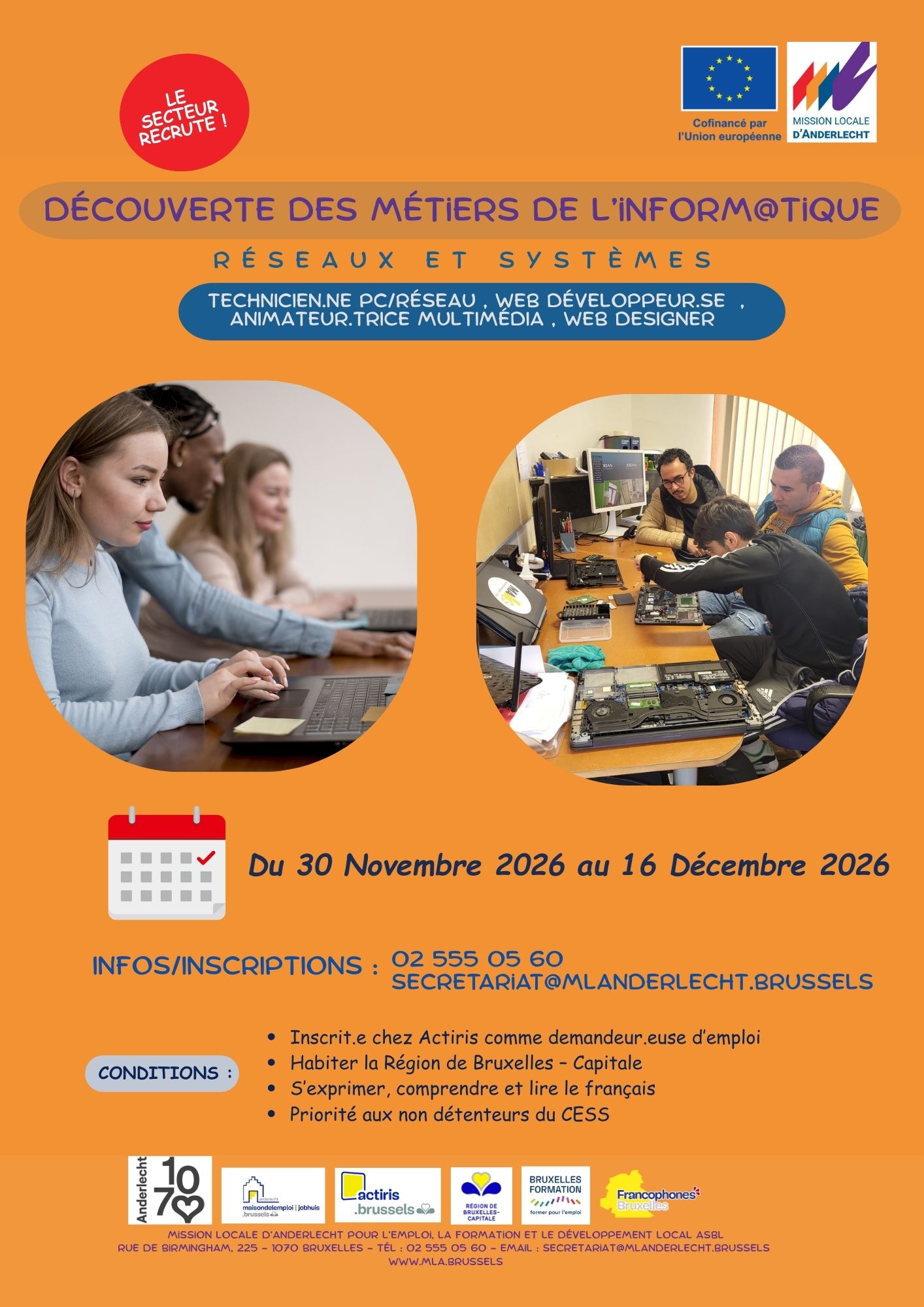Informations et inscriptions 02 555 05 60 secretariat@mlanderlecht.brussels